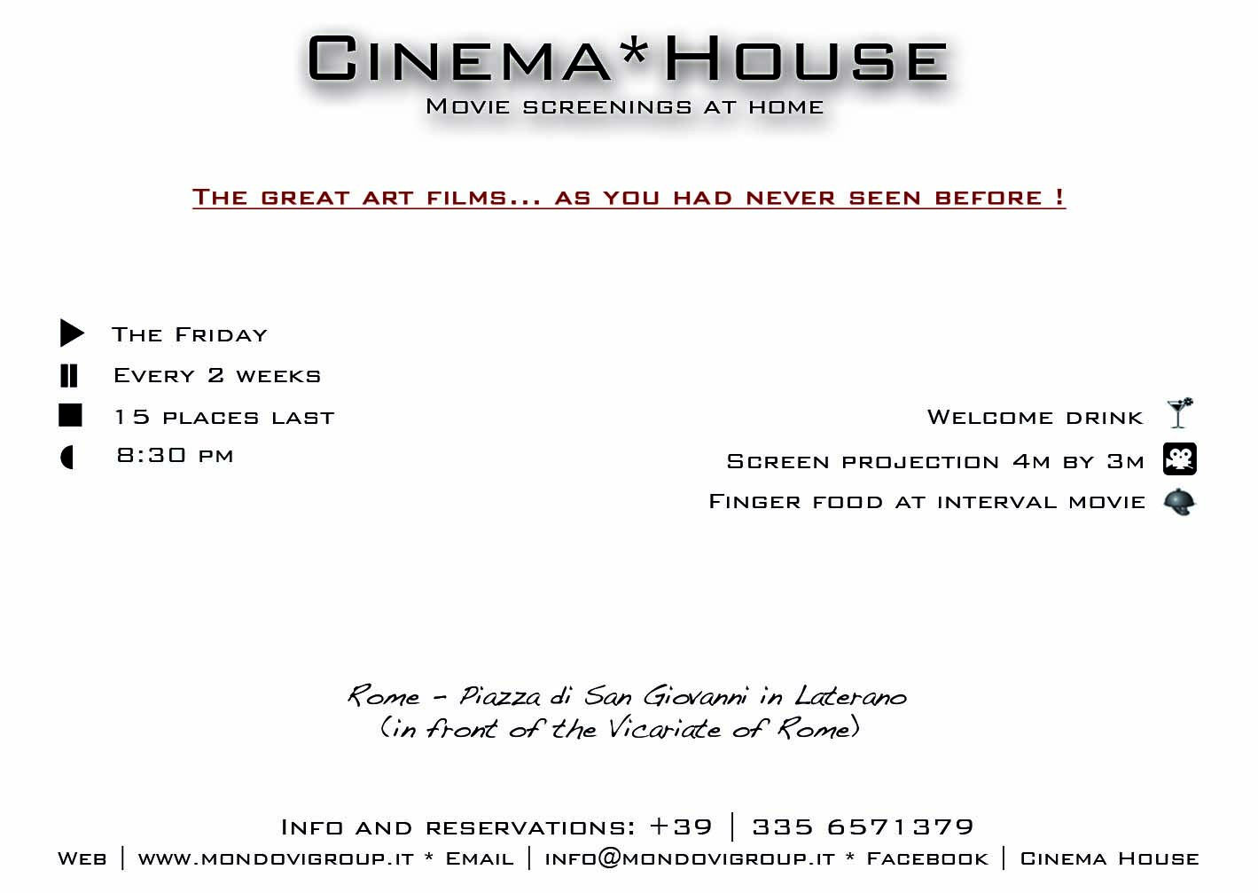 Cinema*House, invitation in touch with your senses. The historical view that blends with the visual and gastronomic experience are just some of the aspects in the balance between domestic dimension and multi-purpose space. 8 appointments with art films that cover the key stages of the Golden Lion at the Venice International Film Festival. All this in a context of exception, from the idea of conviviality at the table laid - as a warning to new visions of intimate relationships, at the base of deeper understanding of the "home" environment. (see the program)