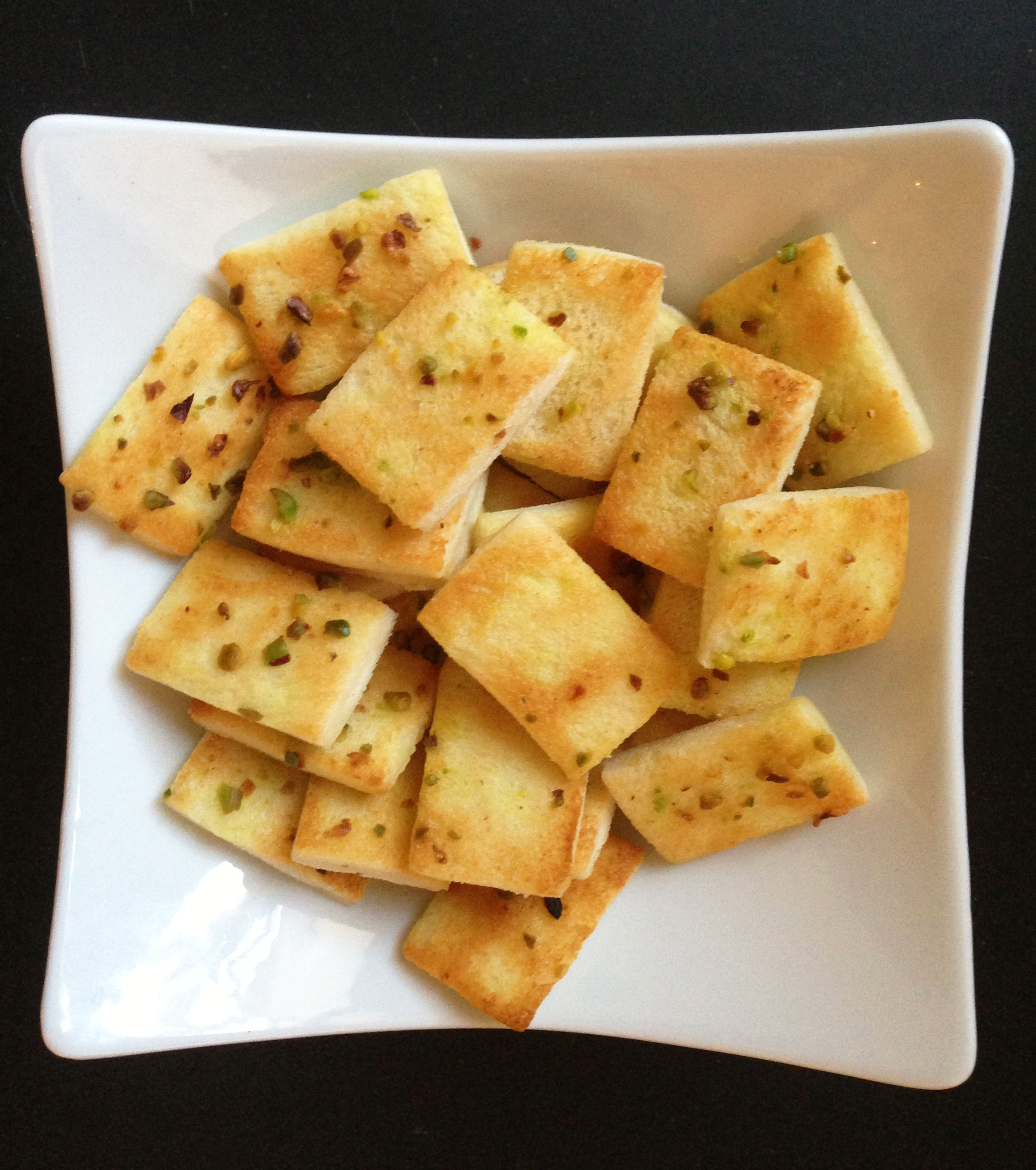 - Crostini di pane dorati al burro con granella di pistacchi 1